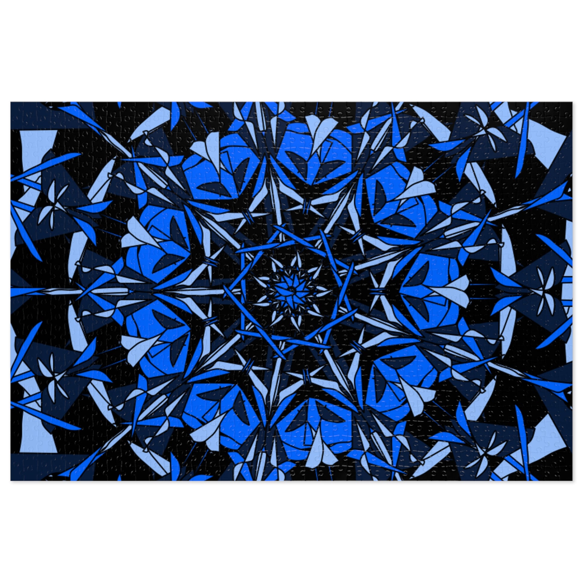 Blue Floral Jigsaw Puzzle with Decorative Tin, Relaxing Family Activity, Game Night Essential, Gift for Puzzle Lovers, Home Decor