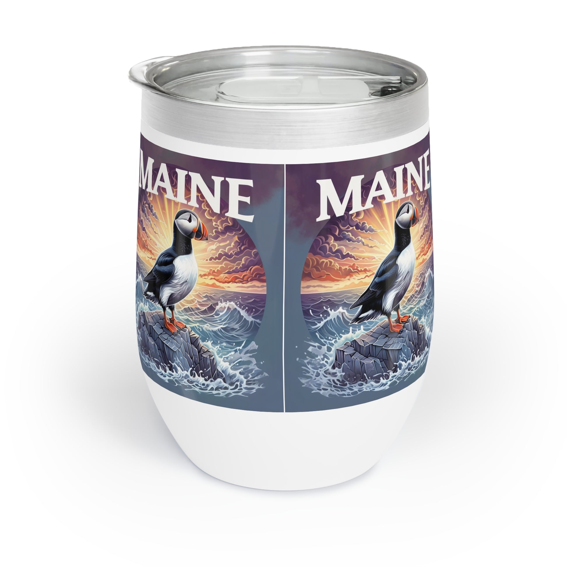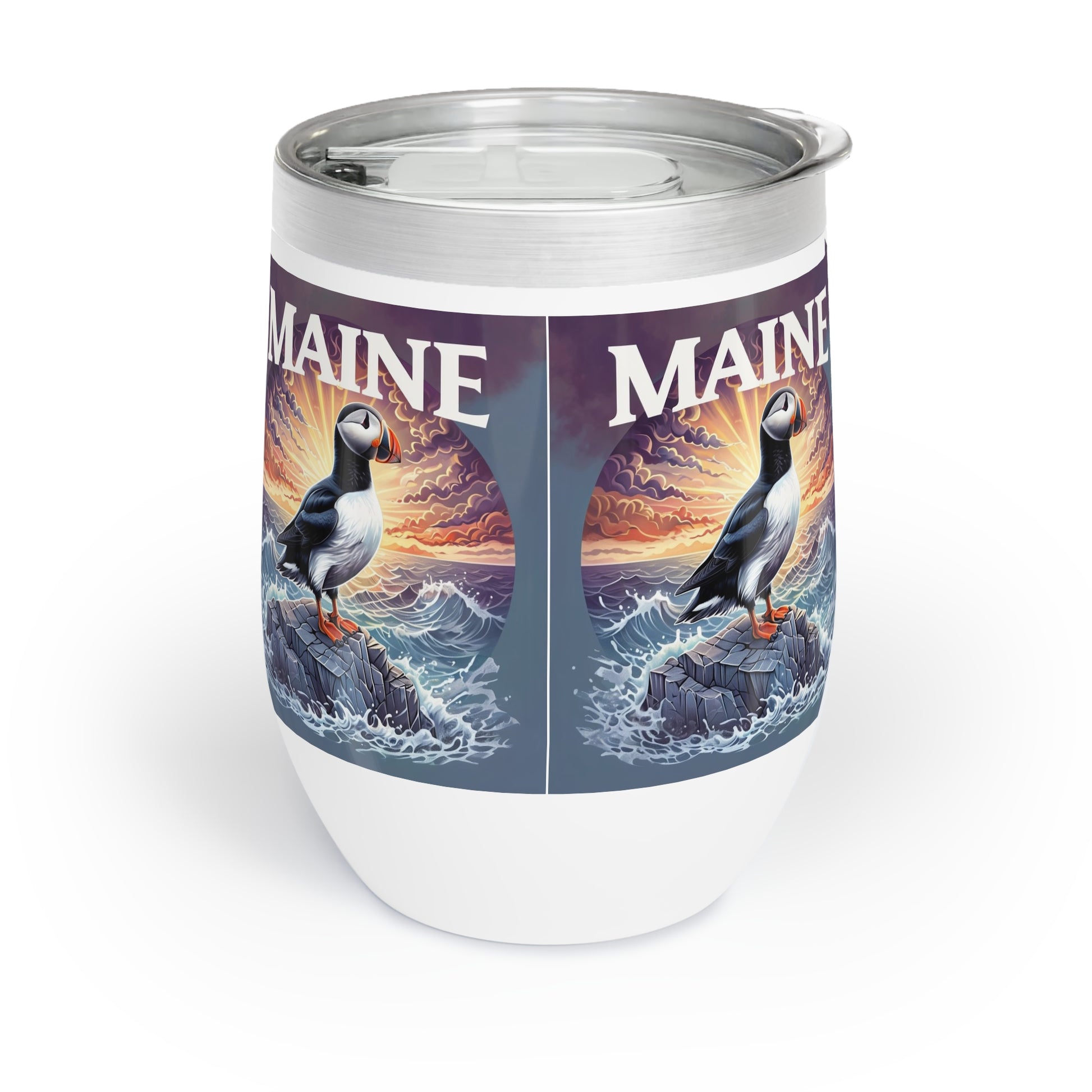 Chill Puffin Wine Tumbler | Coastal Vibes, Gift for Wine Lovers, Beach Party Accessory, Durable Drinkware, Bird Lover Gift