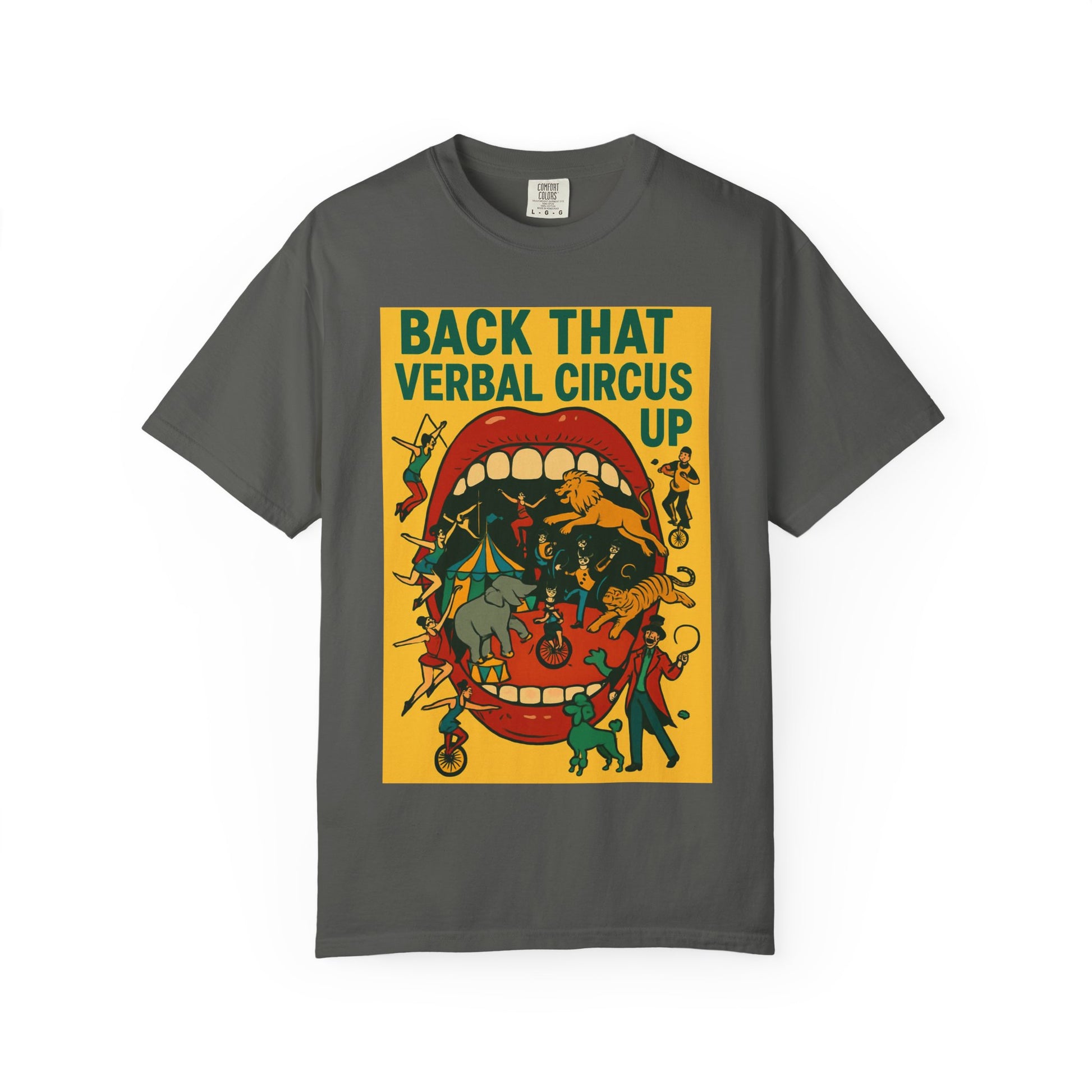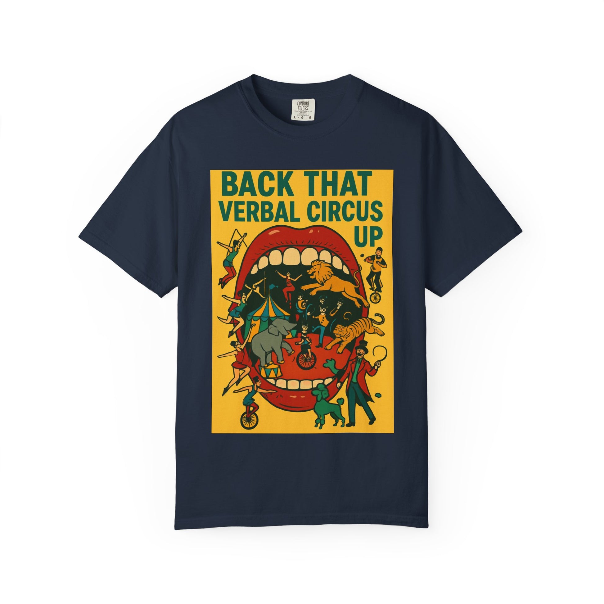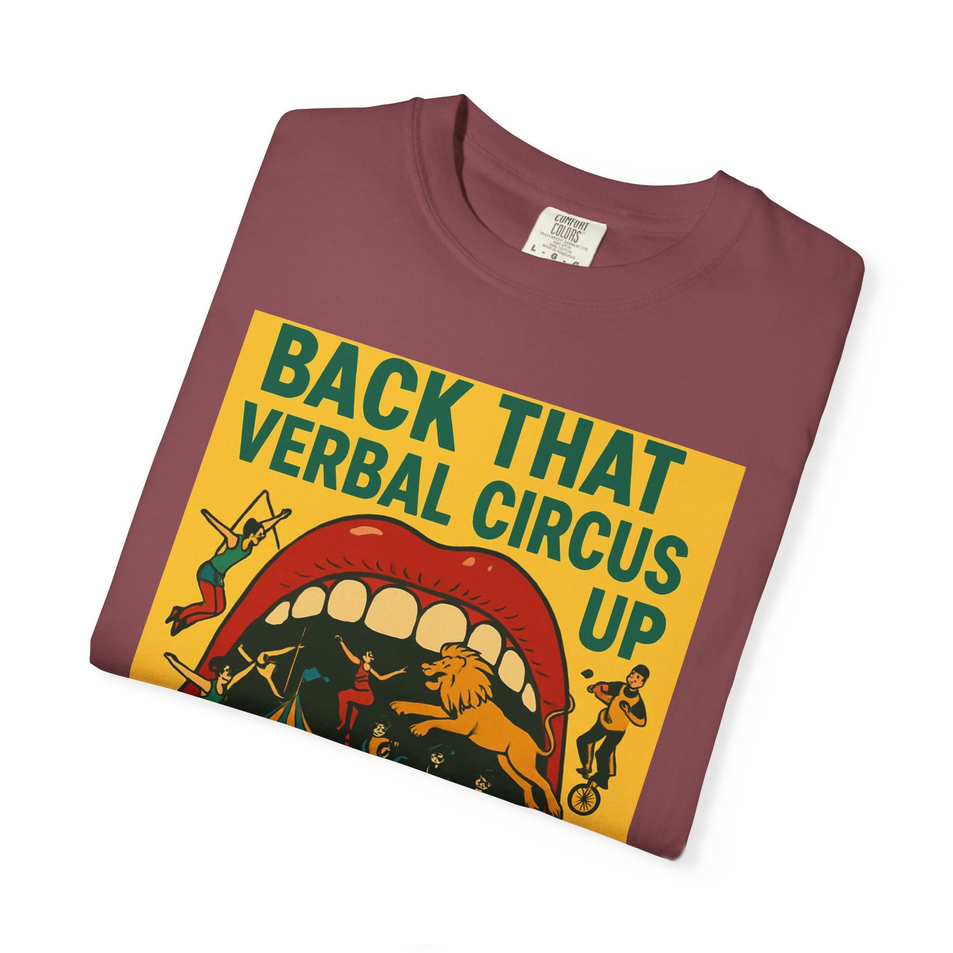 A funny quote verbal circus T-shirt that brings a playful and light-hearted vibe to any wardrobe. Perfect for those who appreciate humor and want to add a touch of fun to their everyday outfits. Ideal for casual wear or as a conversation starter. Relevant for holidays, birthdays, or special occasions where a unique and quirky gift is appreciated.