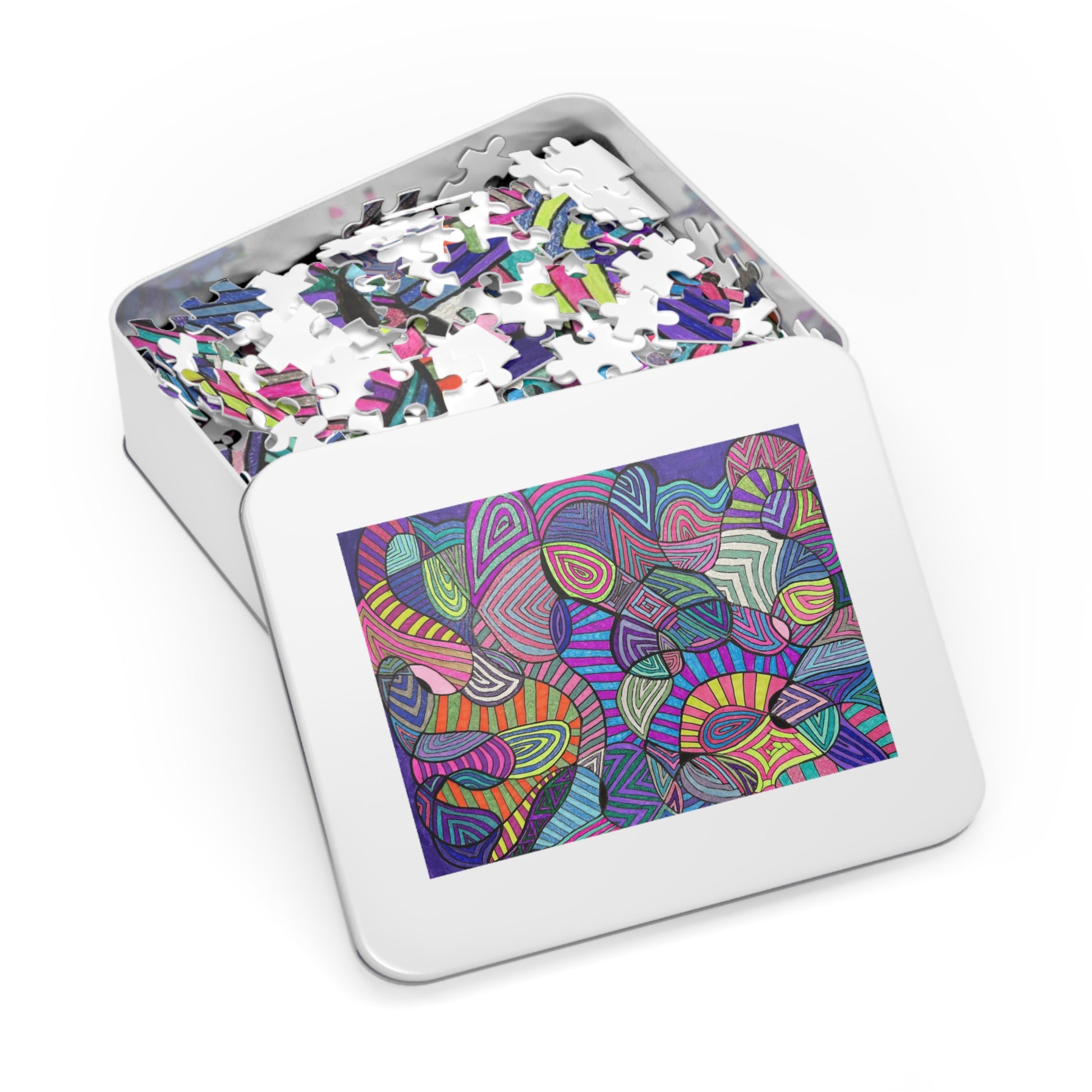 A personalized jigsaw puzzle will deliver wholesome downtime for friends and family. Made with high-quality chipboard pieces, our puzzles come in 30, 110, 252, 500, and 1000-piece variations. The 252 and 500-piece puzzles are ideal for children from the age of 9, while the 1000-piece puzzle is great for adults. Ships in gift-ready metal boxes for a show-stopping presentation. .: Pre-diecut chipboard with a satin finish .: 30, 110, 252, 500 or 1000 precise interlocking pieces .: White metal tin box with finished image on the cover