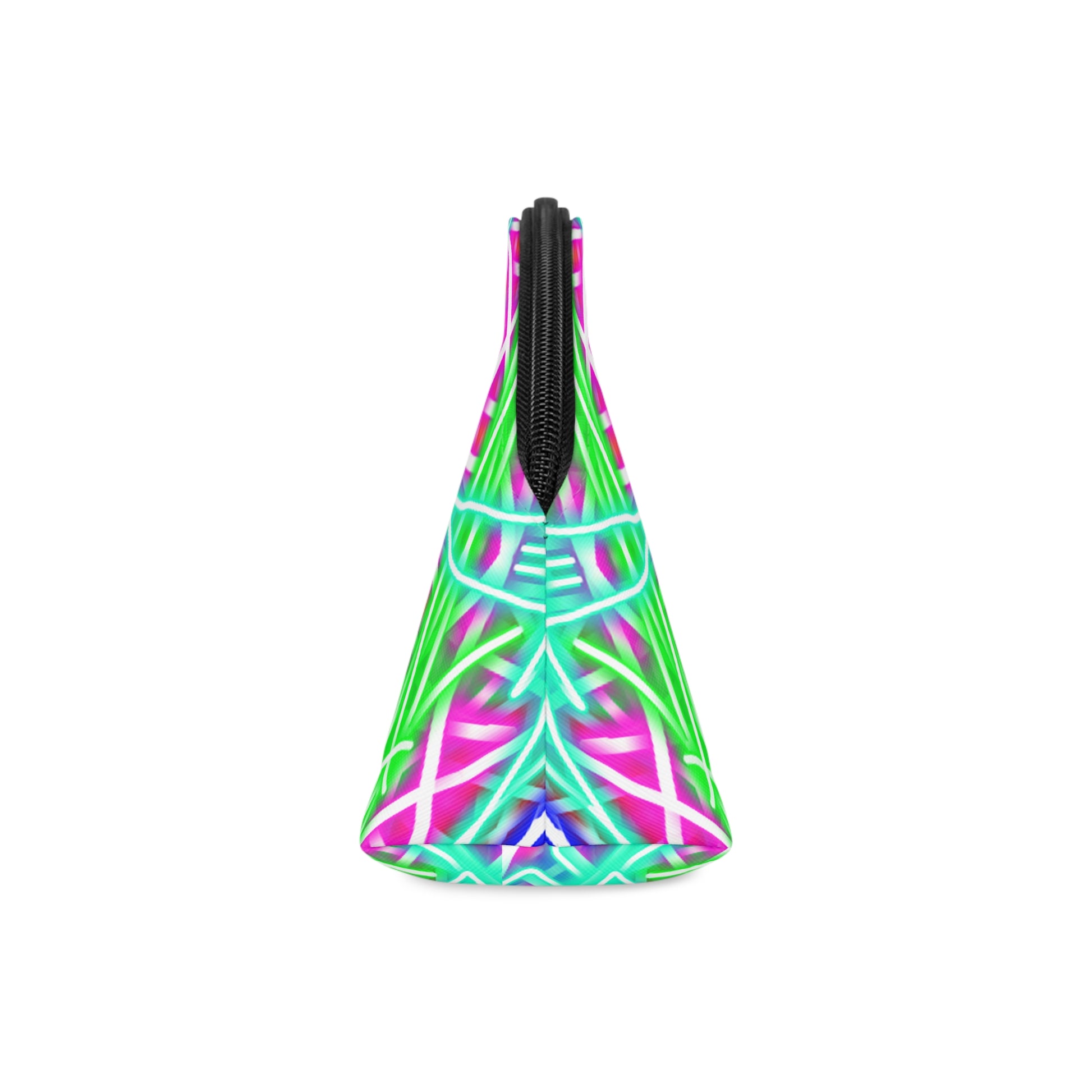 There's more to makeup bags than meets the eye. Their main purpose is to store cosmetics, but they're often used to carry travel essentials, like cables, headphones, medicine, hygiene products. Some even use them as art supply cases. These curve-top bags will be the top multi-purpose item in any home with your unique design. They have a zipper for safety and a removable leather strap for comfort. .: 100% PU faux leather .: One size: 6.3" × 9.4" × 3.3'' (16cm × 23.8cm × 8.4cm) .: Removable leather strap .: Lightweight and compact .: Black interior .: Seam thread color automatically matched to design
