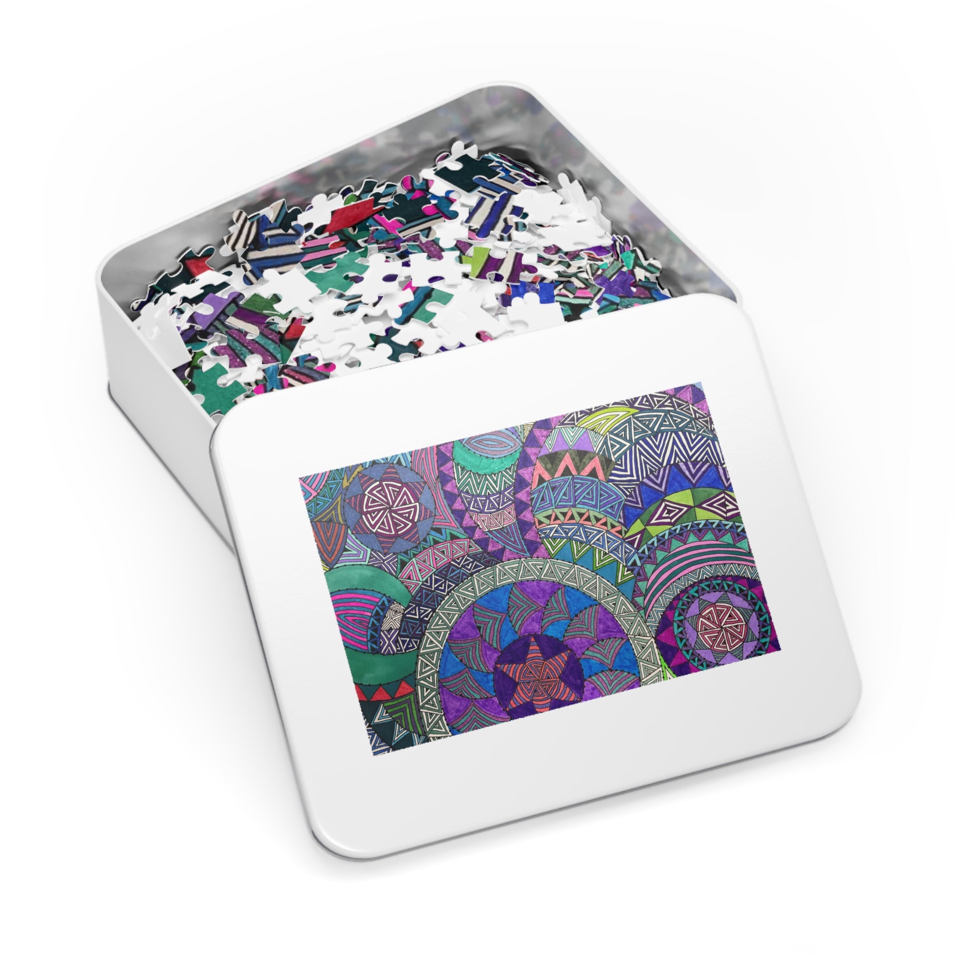 Vibrant Mandala Jigsaw Puzzle with Tin - Perfect Gift for Puzzle Lovers, Home Decor, Family Fun, Mindfulness Activity, Birthday Gift
