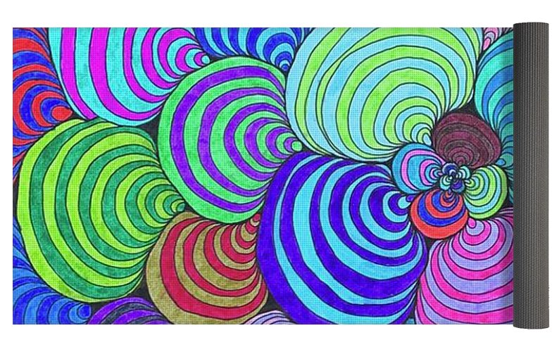 Our premium yoga mats are 24" wide x 72" tall x 0.25" thick and made from natural rubber with a blended microfiber top surface. The top of the mat has the image printed on it, and the back is solid black with textured dimples for better floor grip.