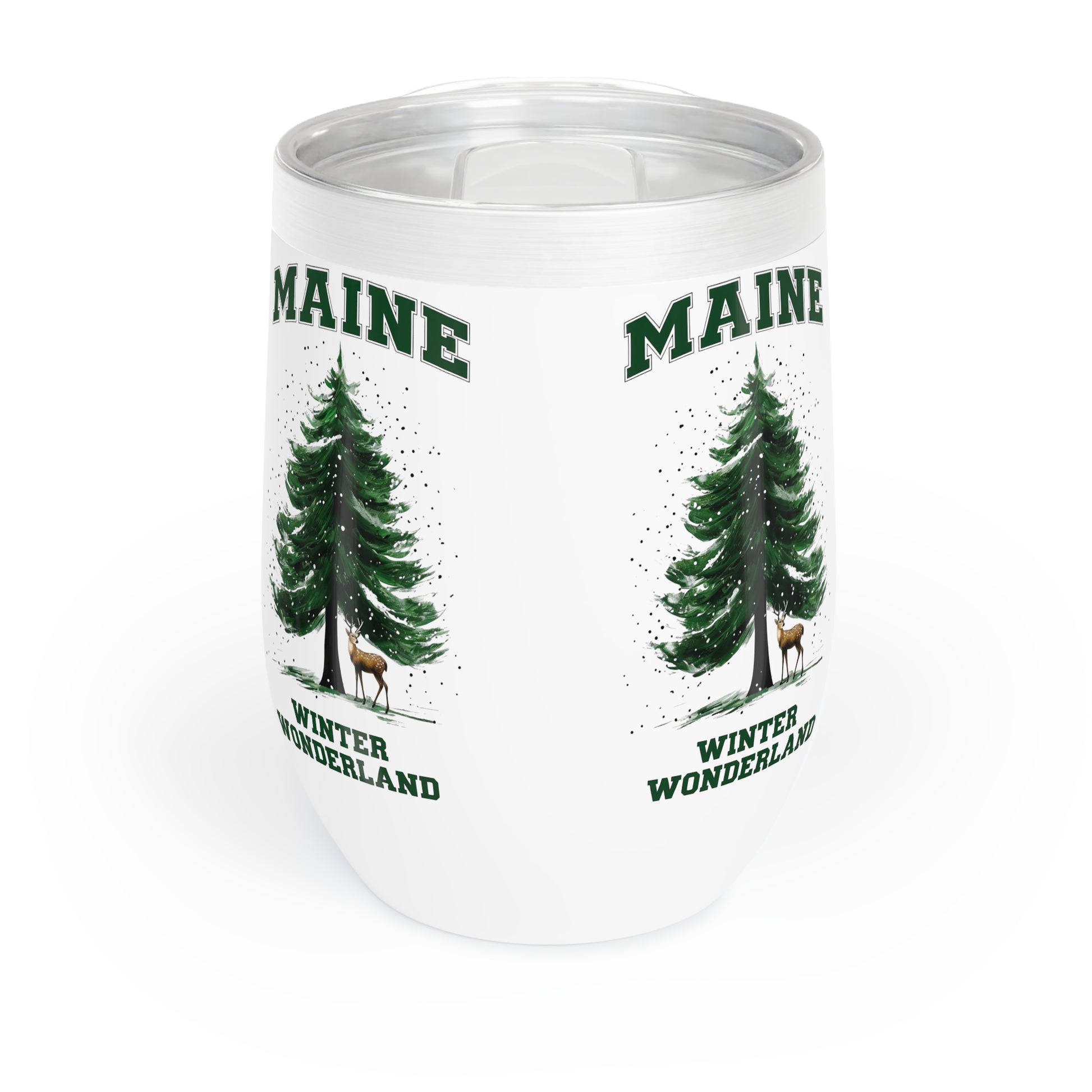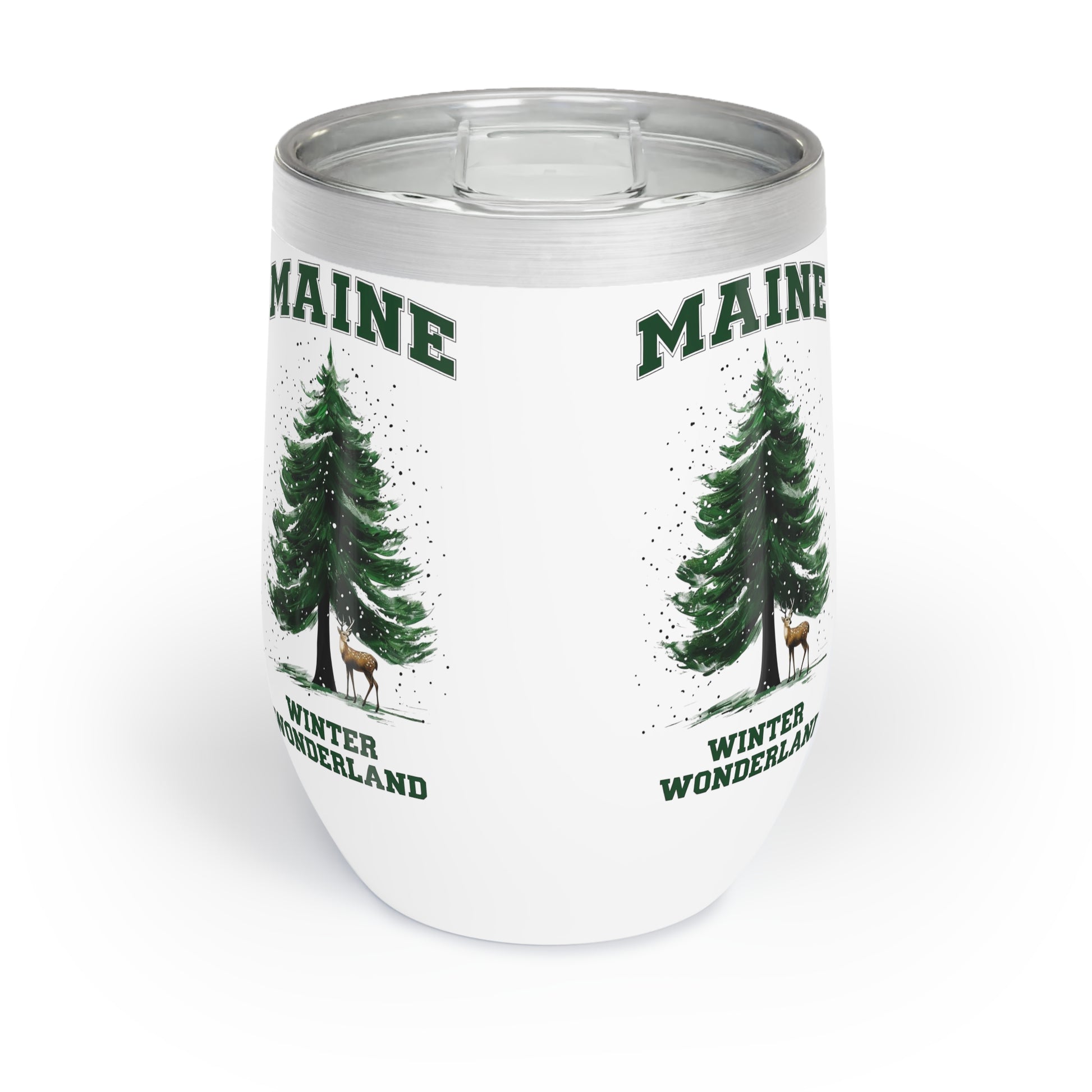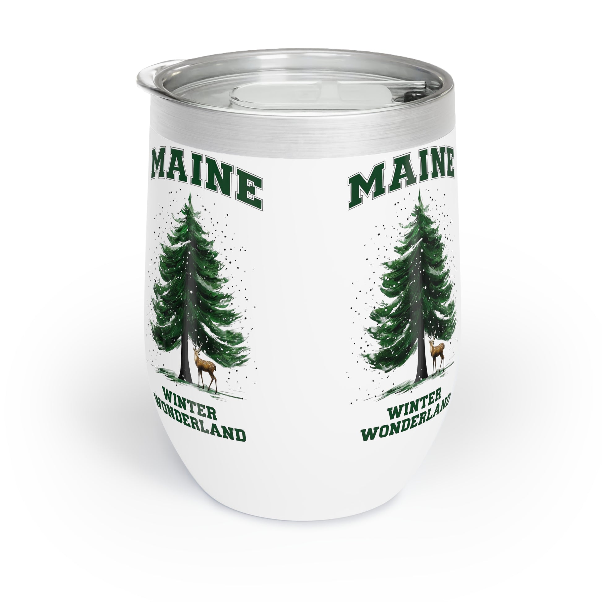 Wine Tumbler, Maine Winter Deer Outdoor Pine Tree, Holiday Gift, Christmas Present, Stainless Steel Cup, Travel Mug