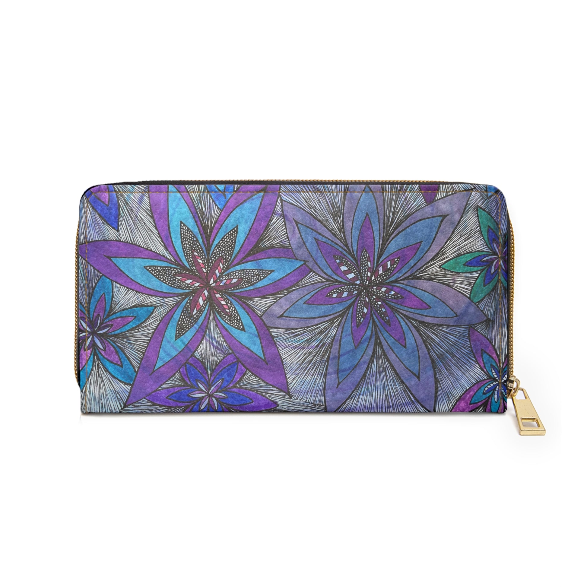 Zipper Wallet Hand Drawn Floral Print Abstract